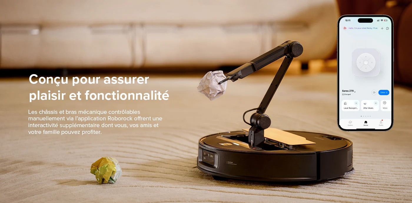 Roborock Saros Z70 robot aspirateur laveur avec bras mécanique OmniGrip™